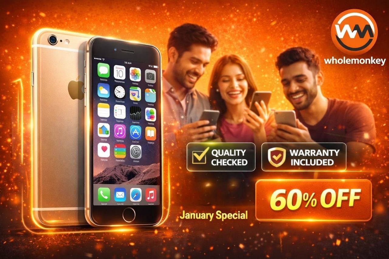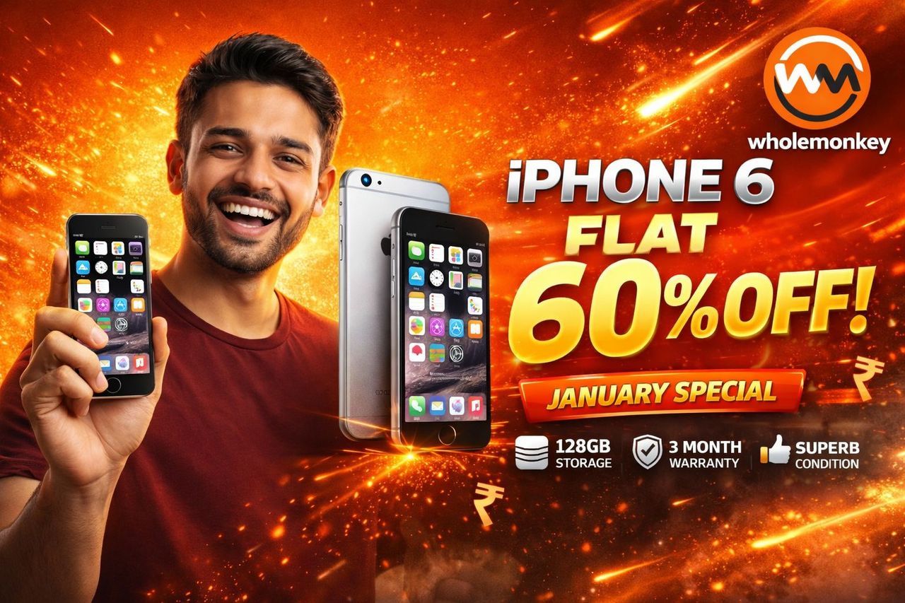 This January, grab a premium Apple smartphone at an unbeatable price with a flat 60% OFF on a refurbished iPhone 6. Enjoy the classic Apple design, smooth daily performance, and generous storage—now available for a limited time only.