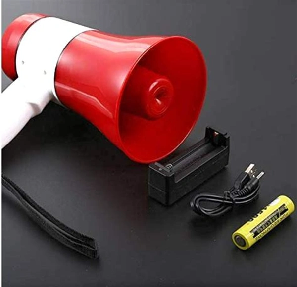 About the Product: 30 Watts Handheld Megaphone with Recorder USB and Memory Card Input for Announcing; Talk; Record; Play; Siren; Music with Battery and Charger
