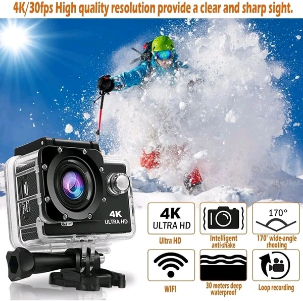 4K 30FPS Action Camera Ultra HD Underwater Camera 170 Degree Wide Angle 98FT Waterproof Camera (4K AC), BrandIBS Connectivity TechnologyWi-Fi, USB, HDMI Flash Memory TypeMicro SD Colour4K AC Special FeatureWaterproof, Time Lapse Screen Size2 Inches Photo Sensor TechnologyCMOS Camcorder typeAction Camera Video Capture Resolution4K Lens TypeZoom