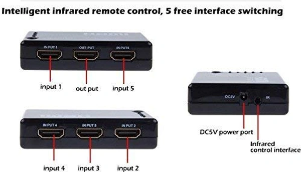 5 Input 1 Output HDMI Switcher 5 Port HDMI Switch With Remote IR Support 4K 3D Supports Full HD 1080p