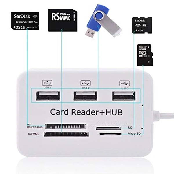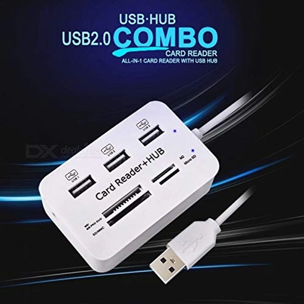 7 in 1 USB 2.0 Combo Card Reader Hub, Ultra Fast Speed, for Laptop PC Tablet, Supports MS Duo/SD/T-Fash/M2 Memory Cards and 3 USB 2.0 Port