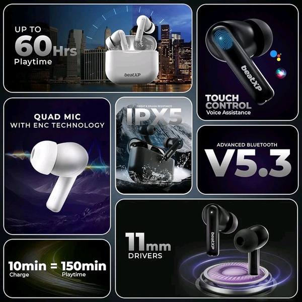 beatXP Vibe XPods Bluetooth True Wireless Ear buds with 60H Playtime, Quad Mic ENC