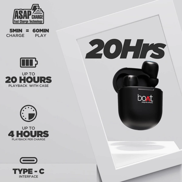 Equipped with 7mm rhythmic dynamic drivers for immersive HD sound. Perfectly designed for the outdoors with IPX5 Sweat and Water Resistance. Seamless connectivity with Bluetooth v5.0, so that nothing stops your day. Style your workouts with only the best true wireless earbuds. With a battery capacity of 500mAh for each earbud, indulge in blissful audio experience for up to 4 hours in a go. The ergonomically designed TWS Airdopes 381 are truly dope!