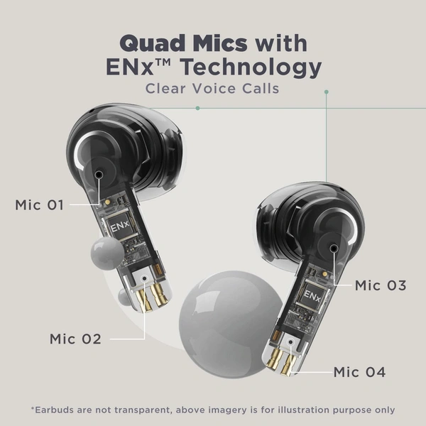 Clear Voice Calls- Be heard clear across voice calls without those usual interruptions, with the Quad Mics ENx Tech enabled Airdopes Atom 81, that cancels out unwanted background noises during calls.