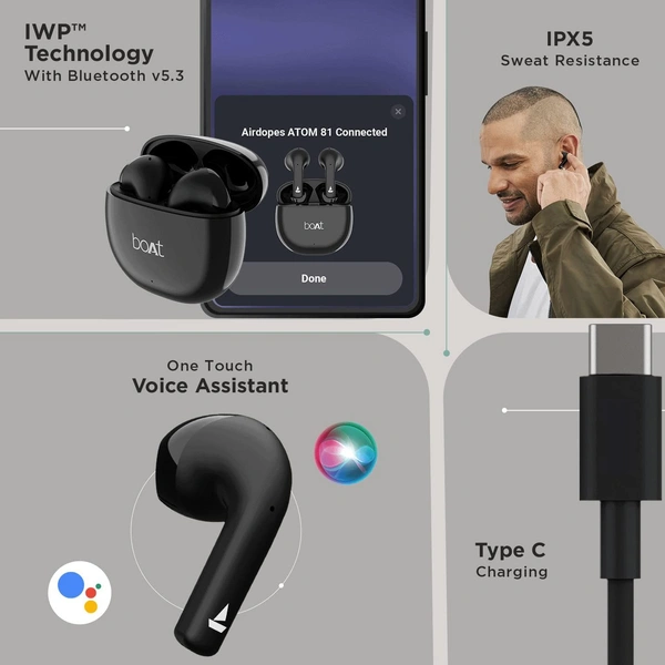 Playback- Airdopes Atom 81 offer a total playtime of up to 50HRS, including up to 10HRS of playtime per earbud.