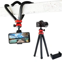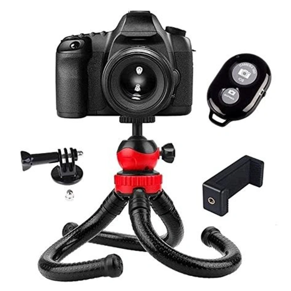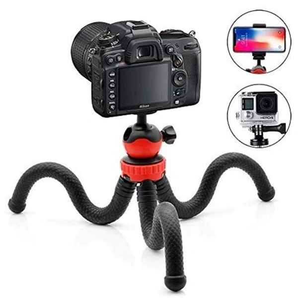 Flexible Gorillapod Tripod with 360 Rotating Ball Head Tripod for All DSLR Cameras(Max Load 1.5 kgs) & Mobile Phones + Free Heavy Duty Mobile Holder(Black) (12 Inch, Black and Red)