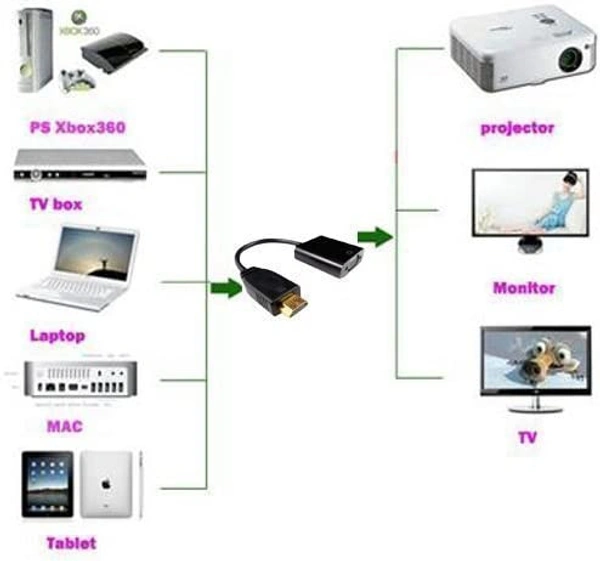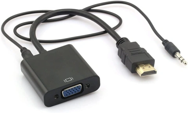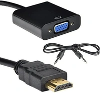 HDMI Male to VGA Female with Audio Cable Converter Adapter HDMI to VGA 1080P Gold-Plated Adapter Compatible with HDTV, Computer, Laptops, Black, One Cable