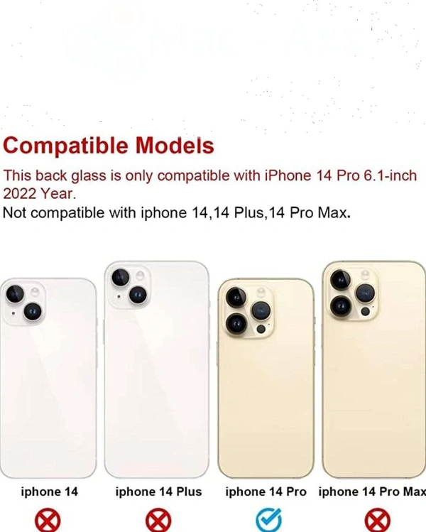iPhone Replacement Part for Rear(Back) Glass Panel Compatible with (iPhone 14 Pro) 6 Month Warranty