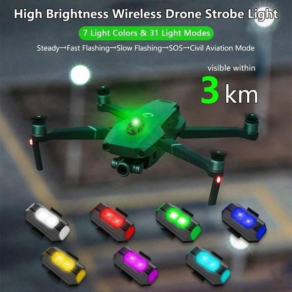 - Rechargeable & Waterproof: Featuring in waterproof based on test but are not recommended exposed to water for long time. The drone strobe light can work up to 5 hours (will vary in different light modes).