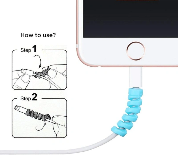Multicoloured Protection Spiral Cable & Wire Protectors Spring Wire for All Wired Accessories for USB Charger, Data Cable, Earphone, Elastic Cord Saver - (Pack of 2)-8 Pcs