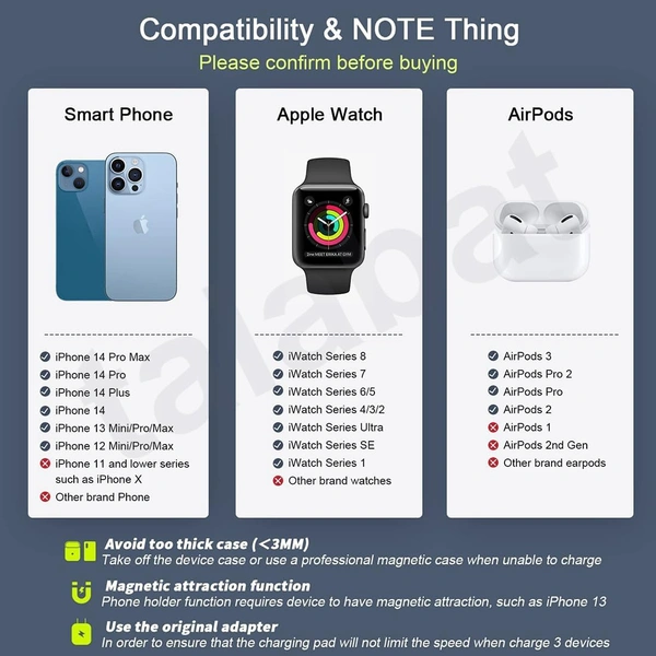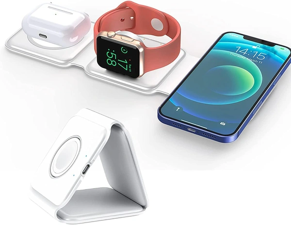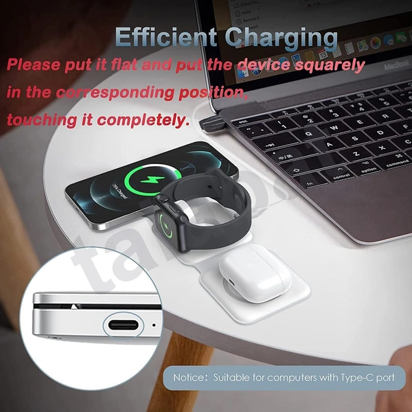 New Wireless Charger 3 In 1,Talabat Magnetic Travel Wireless Charging Station Multiple Devices,Compatible For I-Phone 14/13/12/Pro/Max,Iwatch,Airpods 3/2/Pro,White