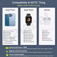 šćWide Compatibilityć- Compatible with iPhone 14, iPhone 14 Plus, iPhone 14 Pro, iPhone 14 Pro Max, iPhone 13, iPhone 13 Pro, iPhone 12, iPhone 12 Pro, iPhone 12 Pro Max, iPhone 12 mini, iPhone 11, iPhone 11 Pro, iPhone 11 Pro Max. Apple Watch Series 2, 3, 4, 5, SE, 6, 7, 8, Ultra(Not support for Samsung watch)