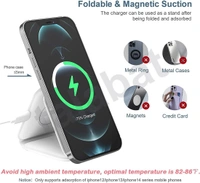šćFolding Design & Strong Magnetic Suctionć- Wireless charger can be folded 180 °, quickly turned into a phone stand, charging plate covered with a magnetic suction device, can be firmly adsorbed iPhone 12/13/14 phones, even if shaking will not slip, charging when the phone horizontal to watch movies, vertical to chat, it can be used in the office, home, dining table and bedroom, charging while using, so that charging is not boring.