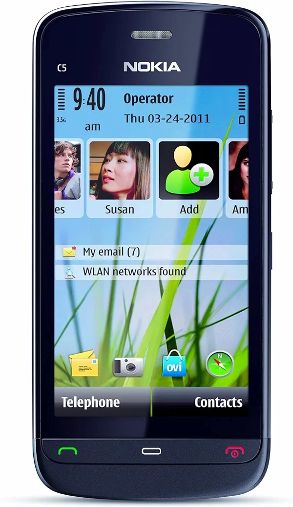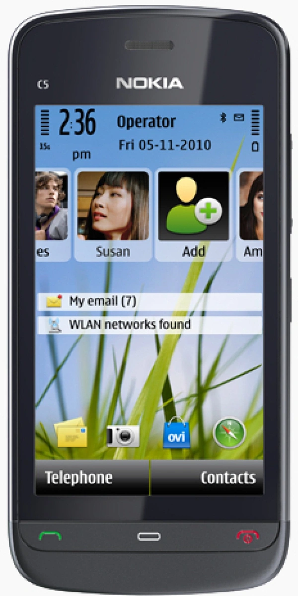 BODY Dimensions 105.8 x 51 x 13.8 mm, 65 cc (4.17 x 2.01 x 0.54 in) Weight 93 g (3.28 oz) SIM Mini-SIM DISPLAY Type TFT resistive touchscreen, 16M colors Size 3.2 inches (~52.3% screen-to-body ratio) Resolution 360 x 640 pixels (~229 ppi pixel density) - Handwriting recognition PLATFORM OS Symbian OS v9.4, Series 60 rel. 5 CPU 600 MHz ARM 11 MEMORY Card slot microSD, up to 16 GB (dedicated slot), 2 GB included Internal 40 MB, 128 MB RAM CAMERA Primary 5 MP, check quality Features Geo-tagging Video 480p@15fps Secondary No SOUND Alert types Vibration; Downloadable polyphonic, MP3 ringtones Loudspeaker Yes 3.5mm jack Yes COMMS WLAN Wi-Fi 802.11 b/g, UPnP technology Bluetooth v2.0, A2DP GPS Yes, with A-GPS; Nokia Maps Radio Stereo FM radio USB microUSB v2.0 FEATURES Sensors Accelerometer Messaging SMS, MMS, Email, Instant Messaging Browser WAP 2.0/xHTML, HTML, Adobe Flash Lite Java Yes, MIDP 2.1 - MP4/H.264/WMV player - MP3/WAV/еAAC+/WMA player - Photo editor - Organizer - Voice command/dial - Predictive text input BATTERY Removable Li-Ion 1000 mAh battery Stand-by Up to 600 h (2G) / Up to 576 h (3G) Talk time Up to 11 h 30 min (2G) / Up to 4 h 30 min (3G) Music play Up to 35 h MISC Colors Graphite Black, Lime Green, Petrol Blue, Aluminum Grey, Pink/black SAR US 1.36 W/kg (head) 0.89 W/kg (body) SAR EU 1.29 W/kg (head) Price group 3/10 TESTS Camera Photo Loudspeaker Voice 73dB / Noise 65dB / Ring 75dB Audio quality Noise -90.0dB / Crosstalk -92.0dB