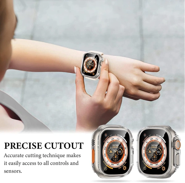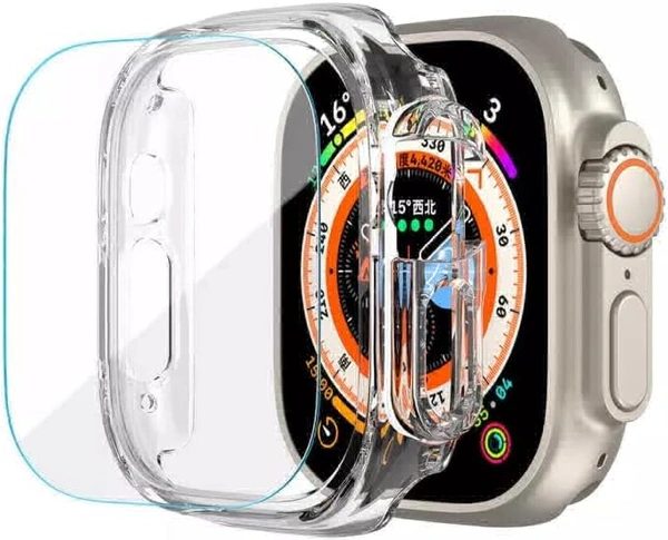 Plastic Watch Case Cover with Screen Protector Temper Compatible with Smartwatch Watch 49mm Ultra Series 8 (Pack Of 4) Transparent Only