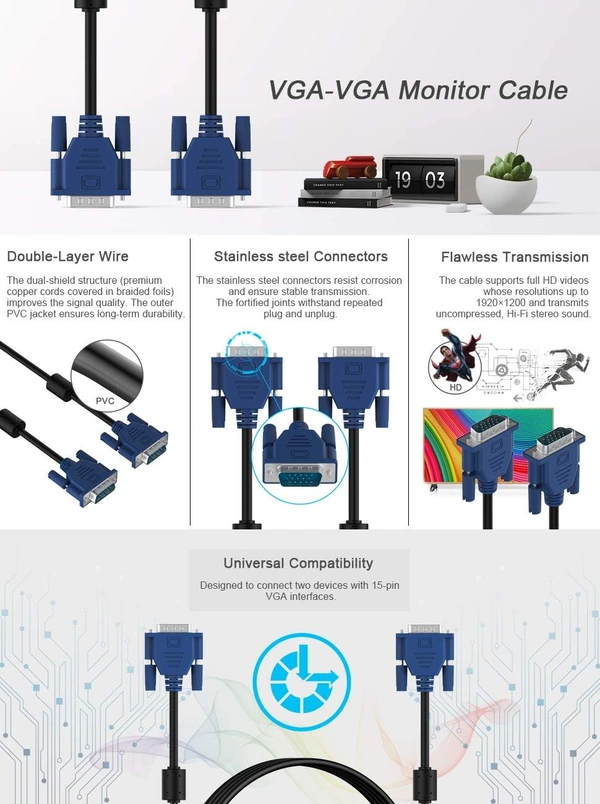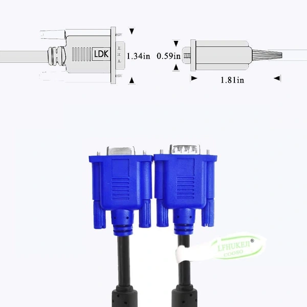 Quality Assured Male to Male VGA Cable Support Monitor/PC/LCD/LED, Plasma, Projector, TFT (LST-VGACBLE-1.5M)