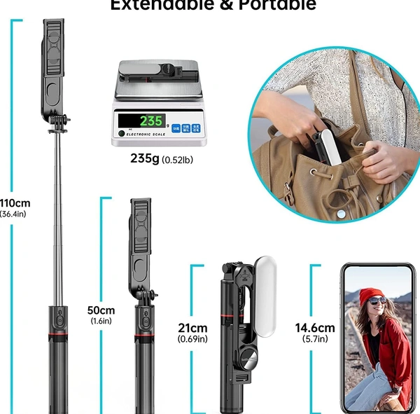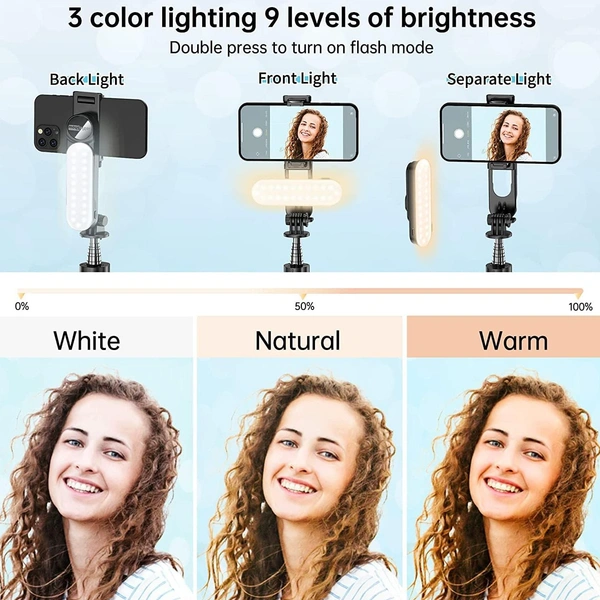 Compatible DevicesSmartphoneDetachable Fill Light】: Selfie stick & tripod has 3 color lighting modes (9 brightness levels): cold white, white and warm white. Adjustable lighting makes photos or videos more natural and soft. Apart from being a light stand, it also a professional tool for Makeup artists, Beautician, YouTube content creators, Video bloggers, Selfie lovers, Facebook Live, Instagram Live, Snap chat, Portrait Photography and Streaming etc. Great for dirferent scenes.