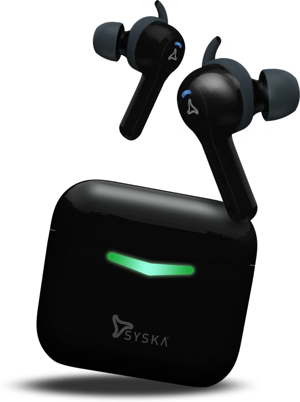 SYSKA Sonic Buds IEB900 Earbuds with 50Hr Play Time, auto ENc Tech, Low Latency, IPX4, 13mm Drivers for Deep Bass, Type-C Charging Random Colour