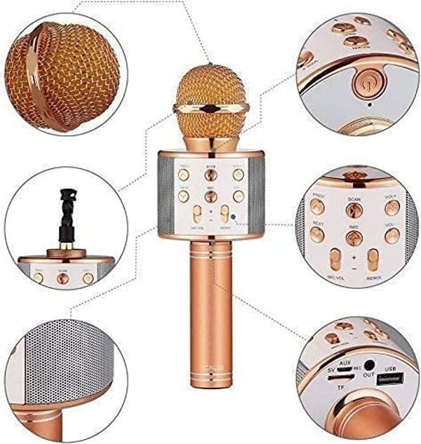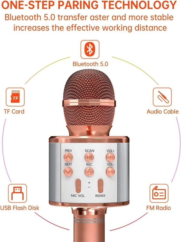 Wireless Singing Mike Multi-Function Bluetooth Karaoke Mic with Microphone Speaker for All Smart Phones